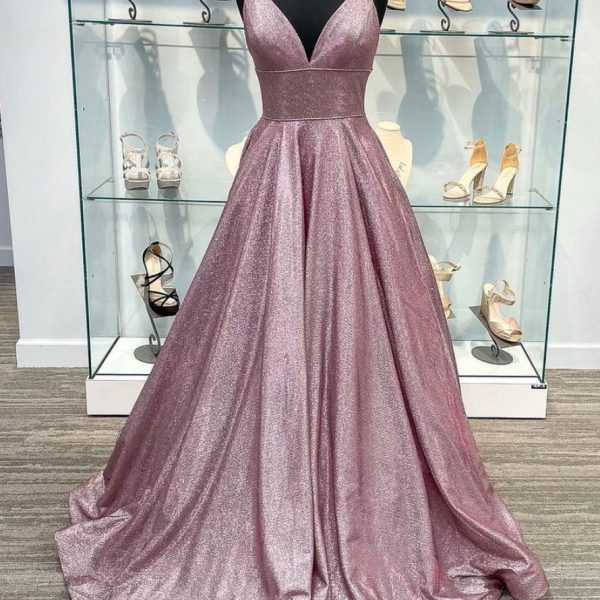 Simple v neck long prom dress, v neck long formal evening dress