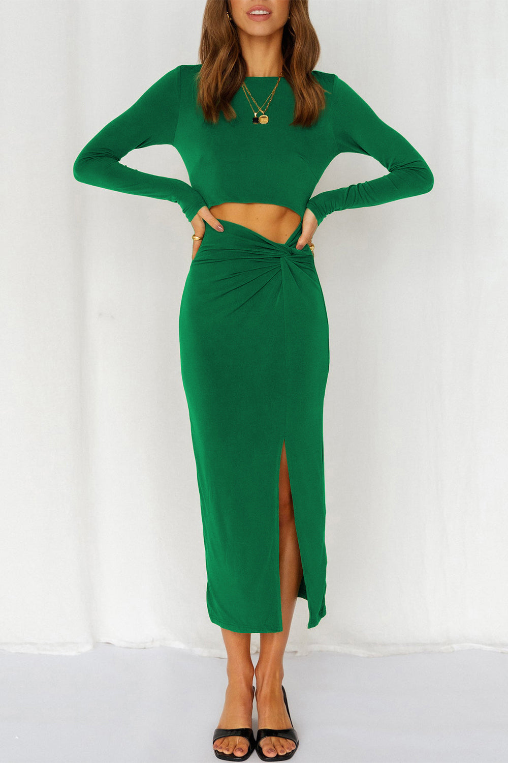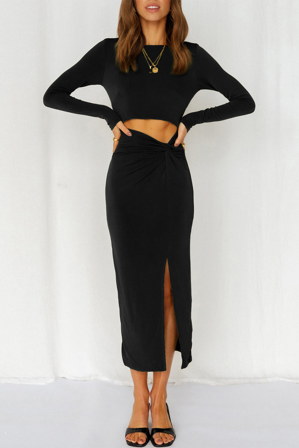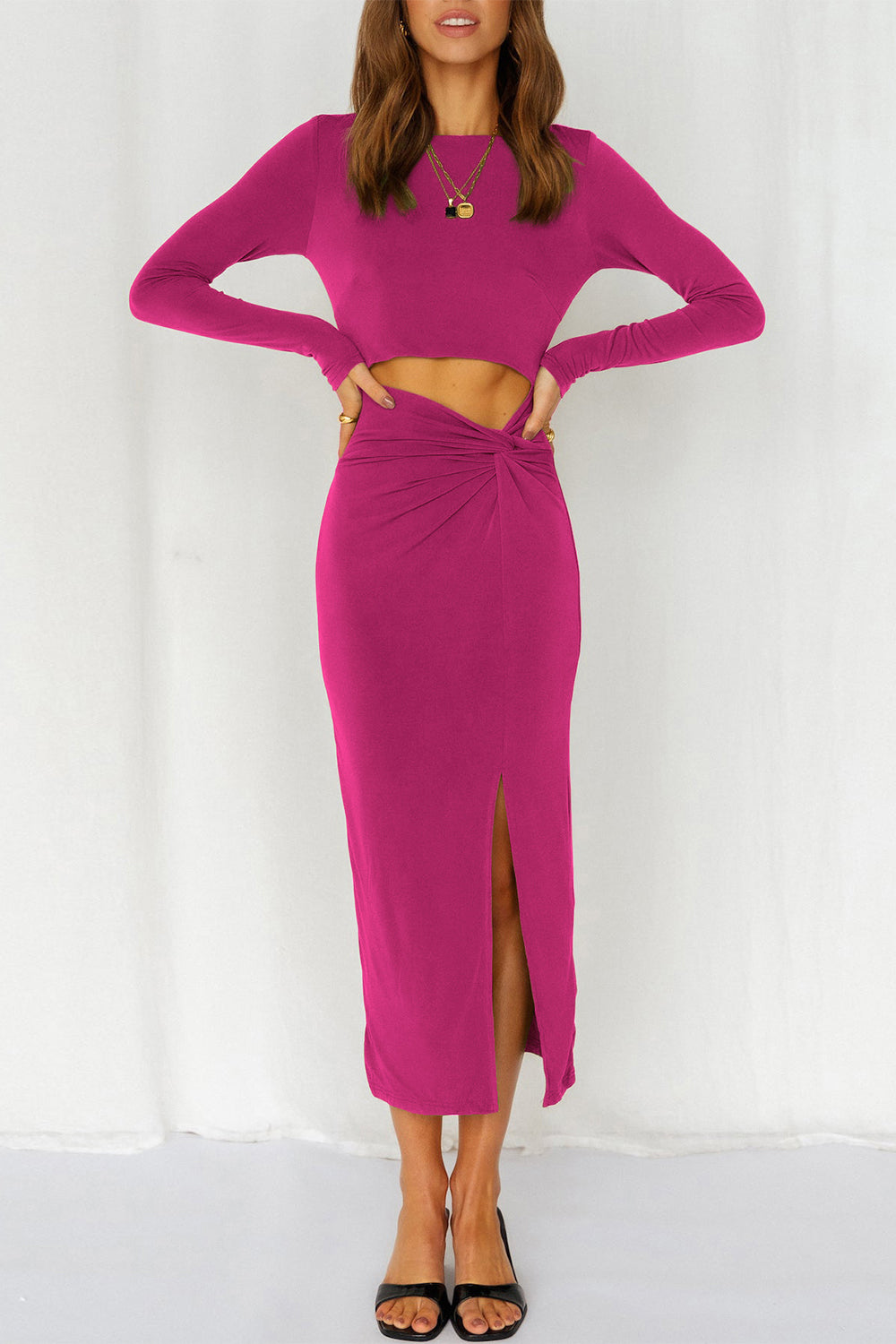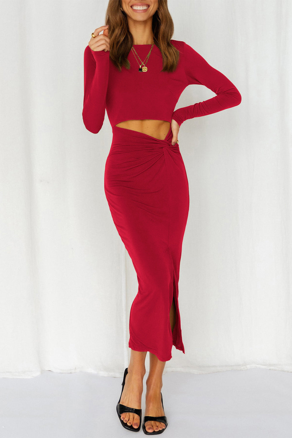 / Cutout Bodycon Twist Waist Midi Dress