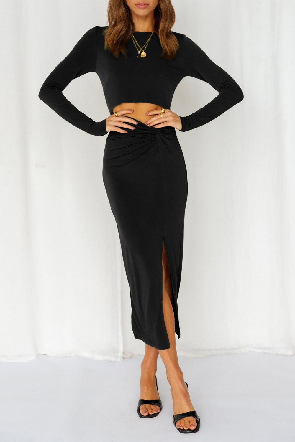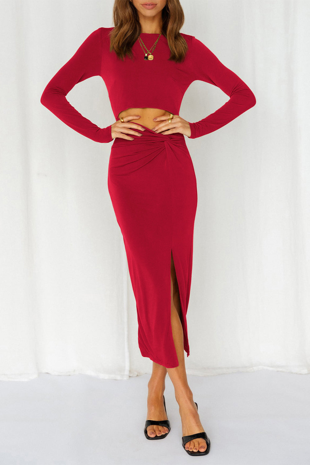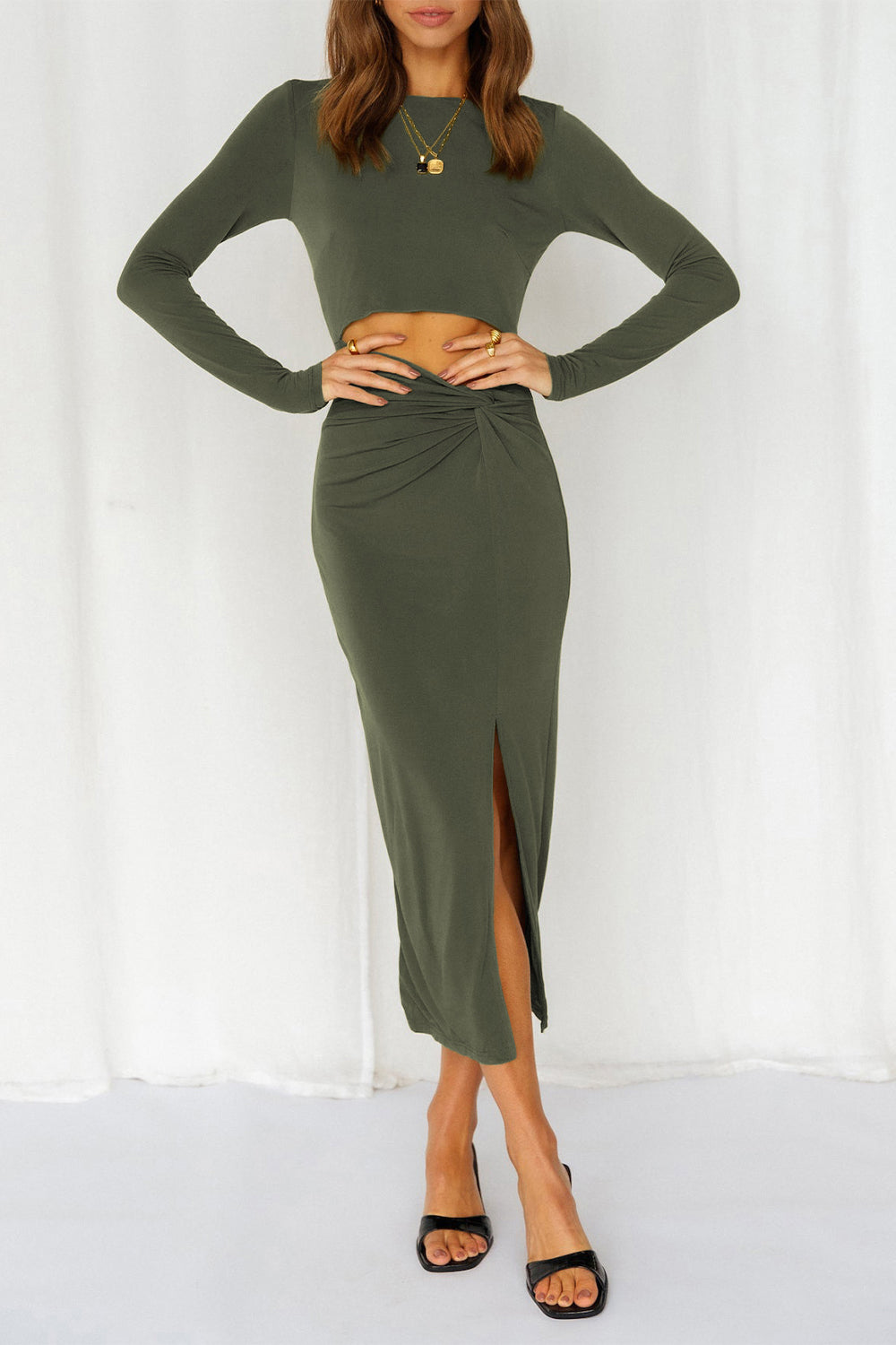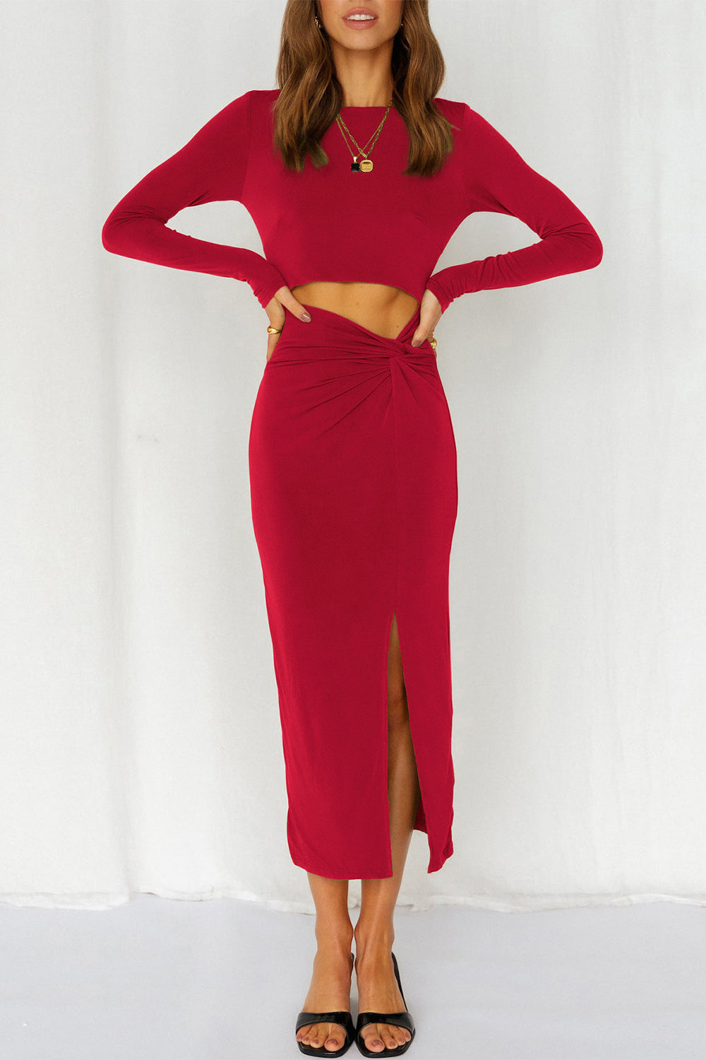 Cutout Bodycon Twist Waist Midi Dress quantity