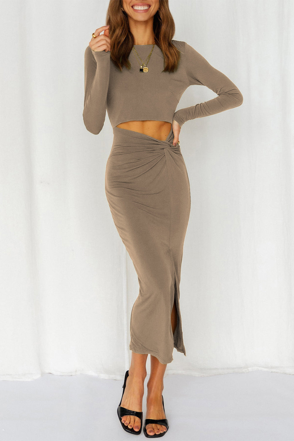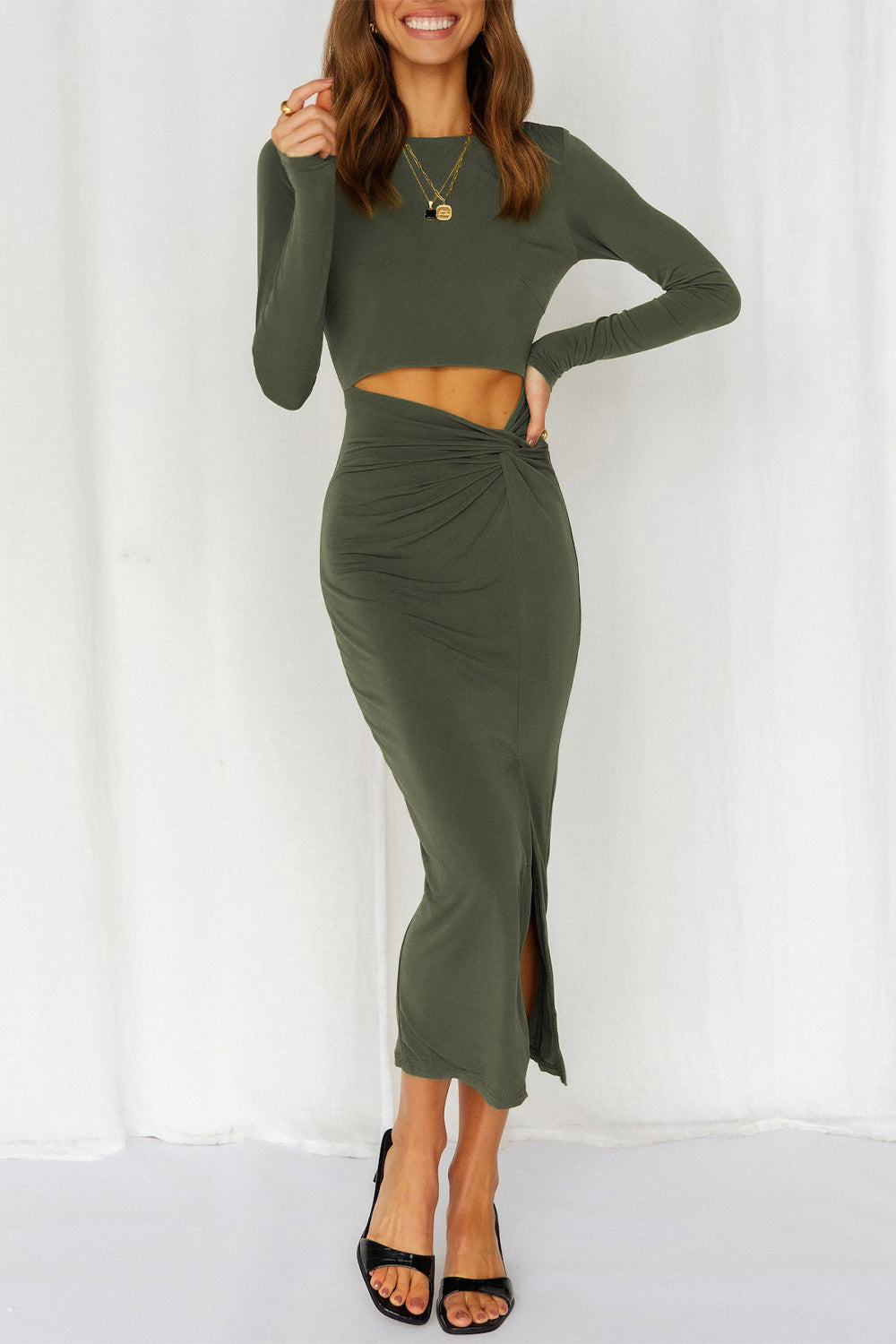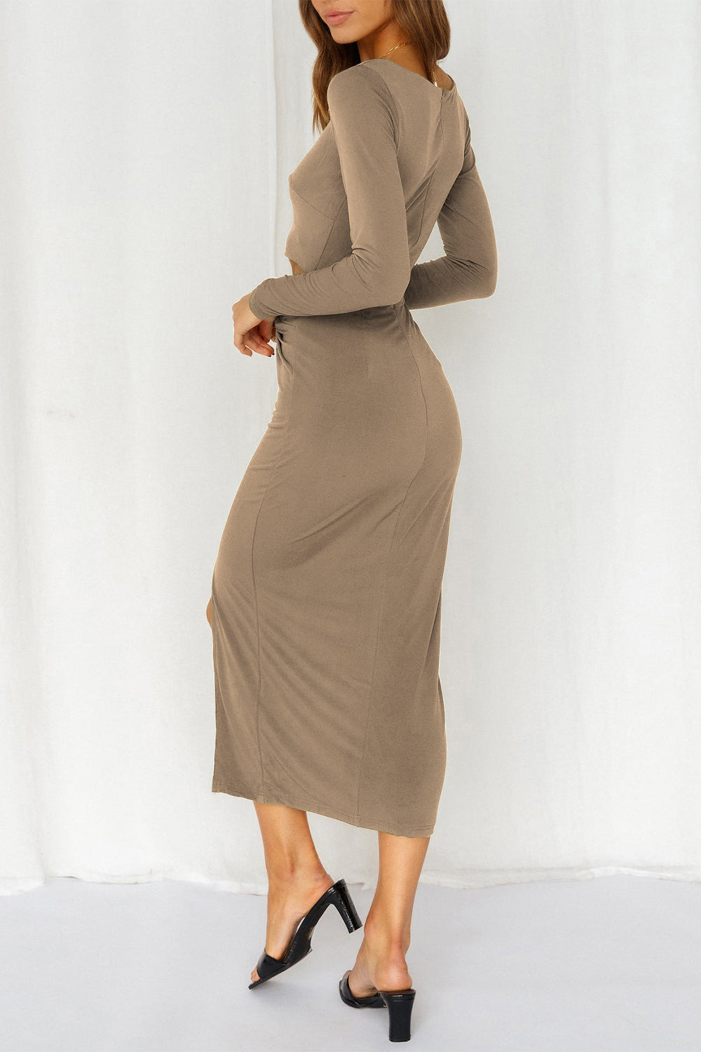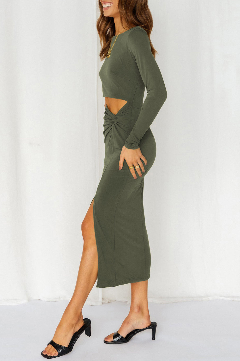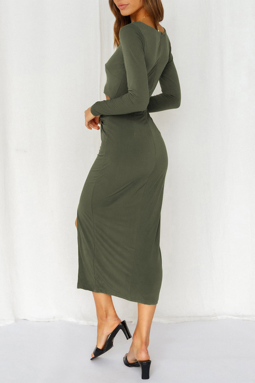 Cutout Bodycon Twist Waist Midi Dress