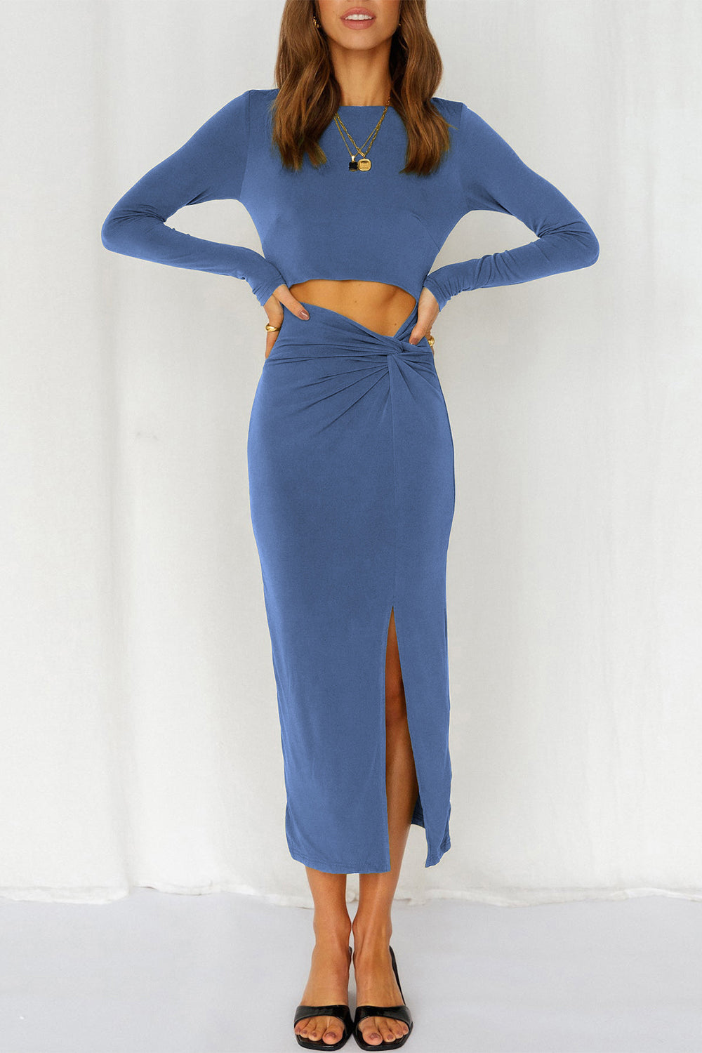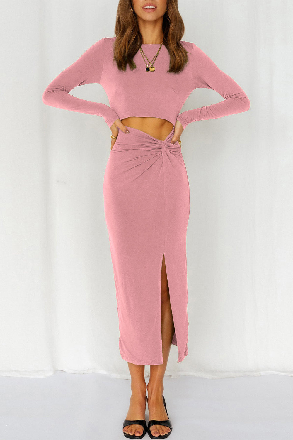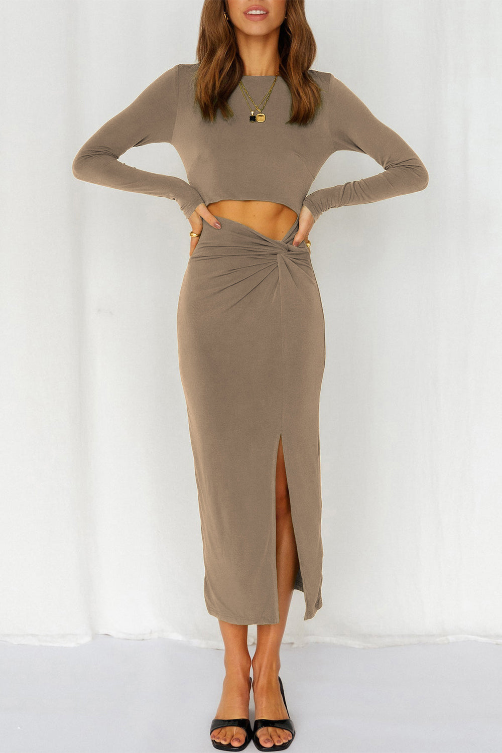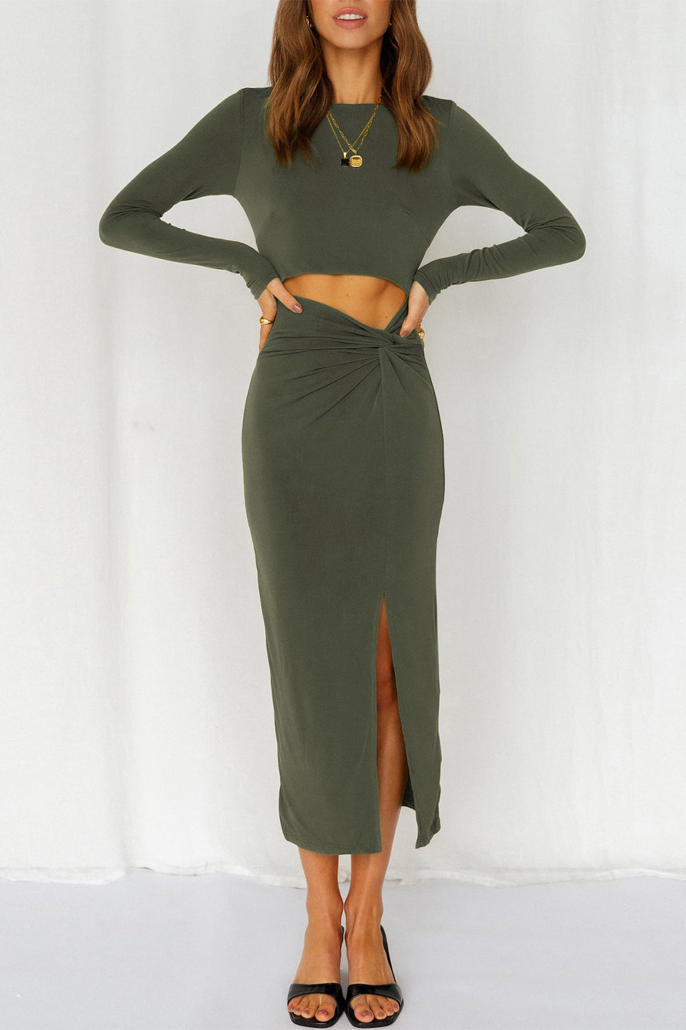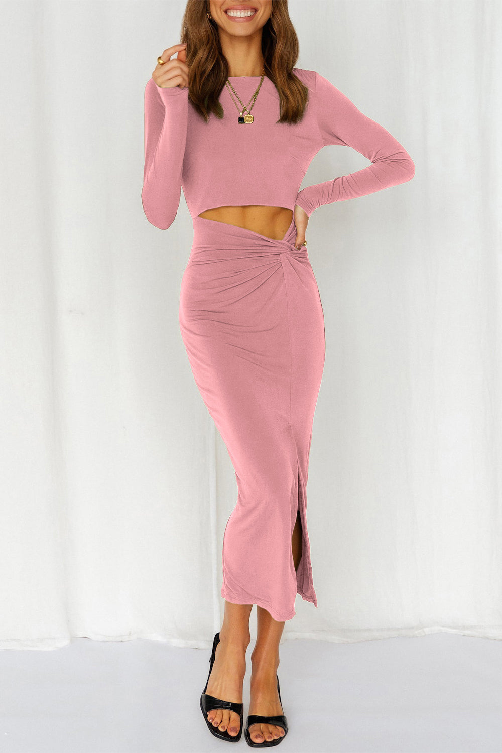 Cutout Bodycon Twist Waist Midi Dress