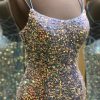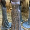 Double Straps Lace-Up Sequins Long Prom Dress with Slit