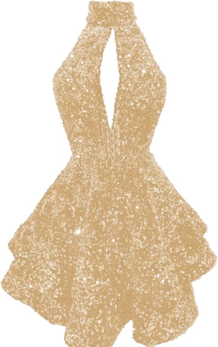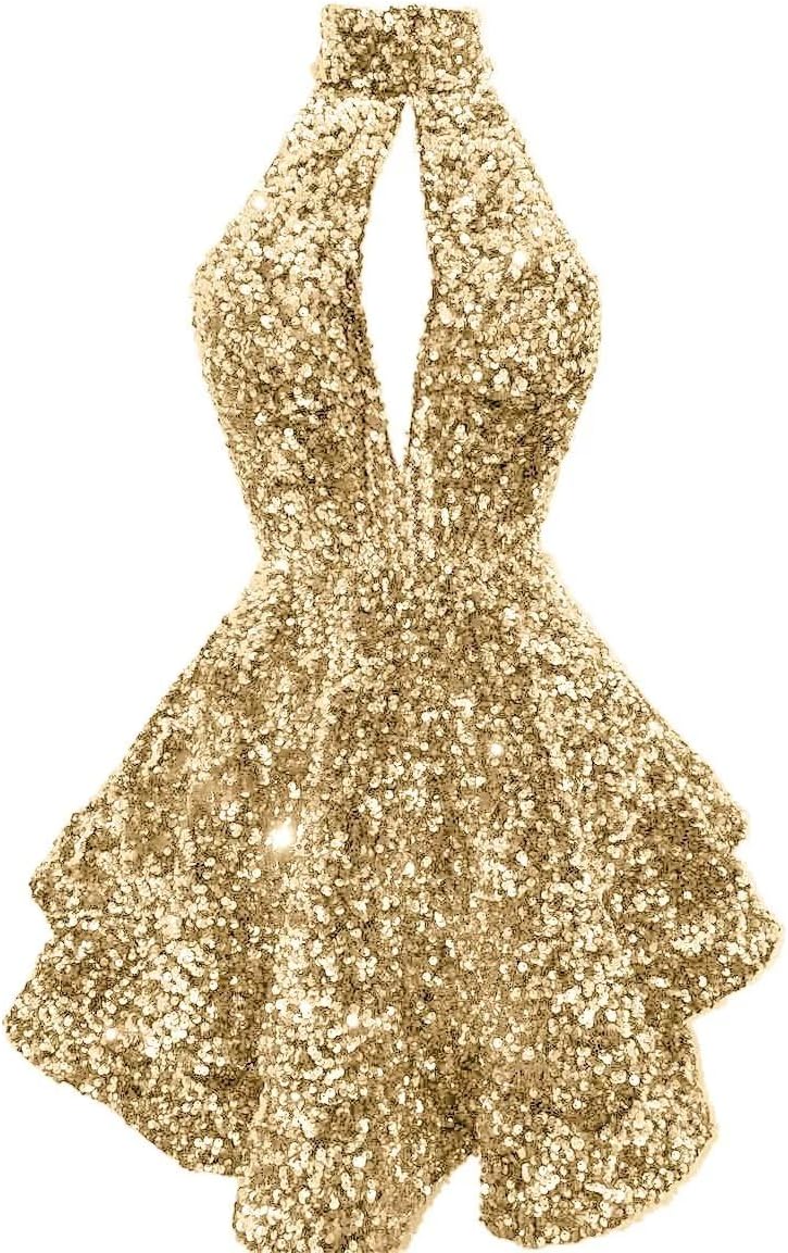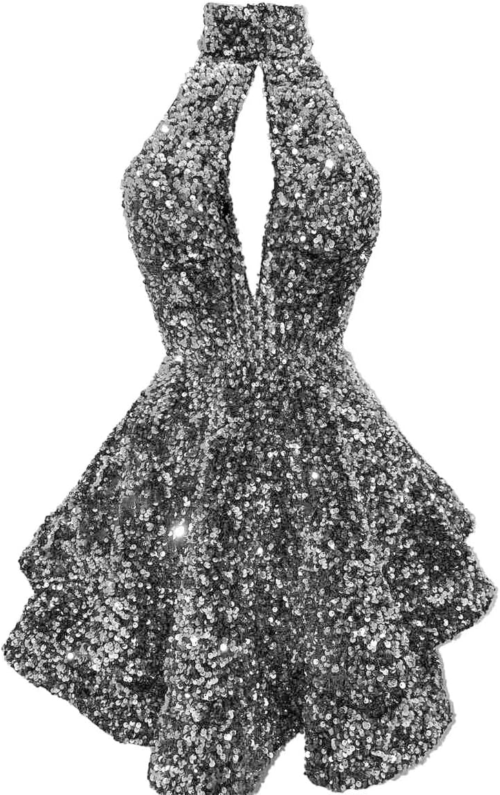 Halter Sequin Homecoming Dresses Short Sparkly Glitter Cutout Mini Backless Tight Bodycon Prom Cocktail Dresses for Women