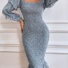 / Women Ruffle Mermaid Square Neck Smocked Dress