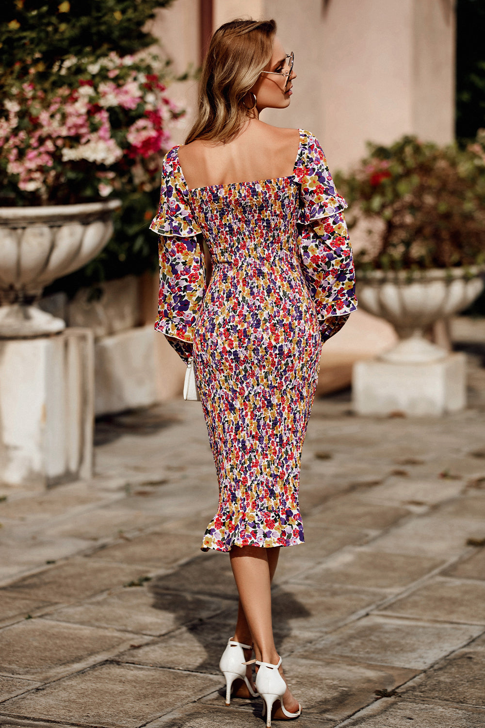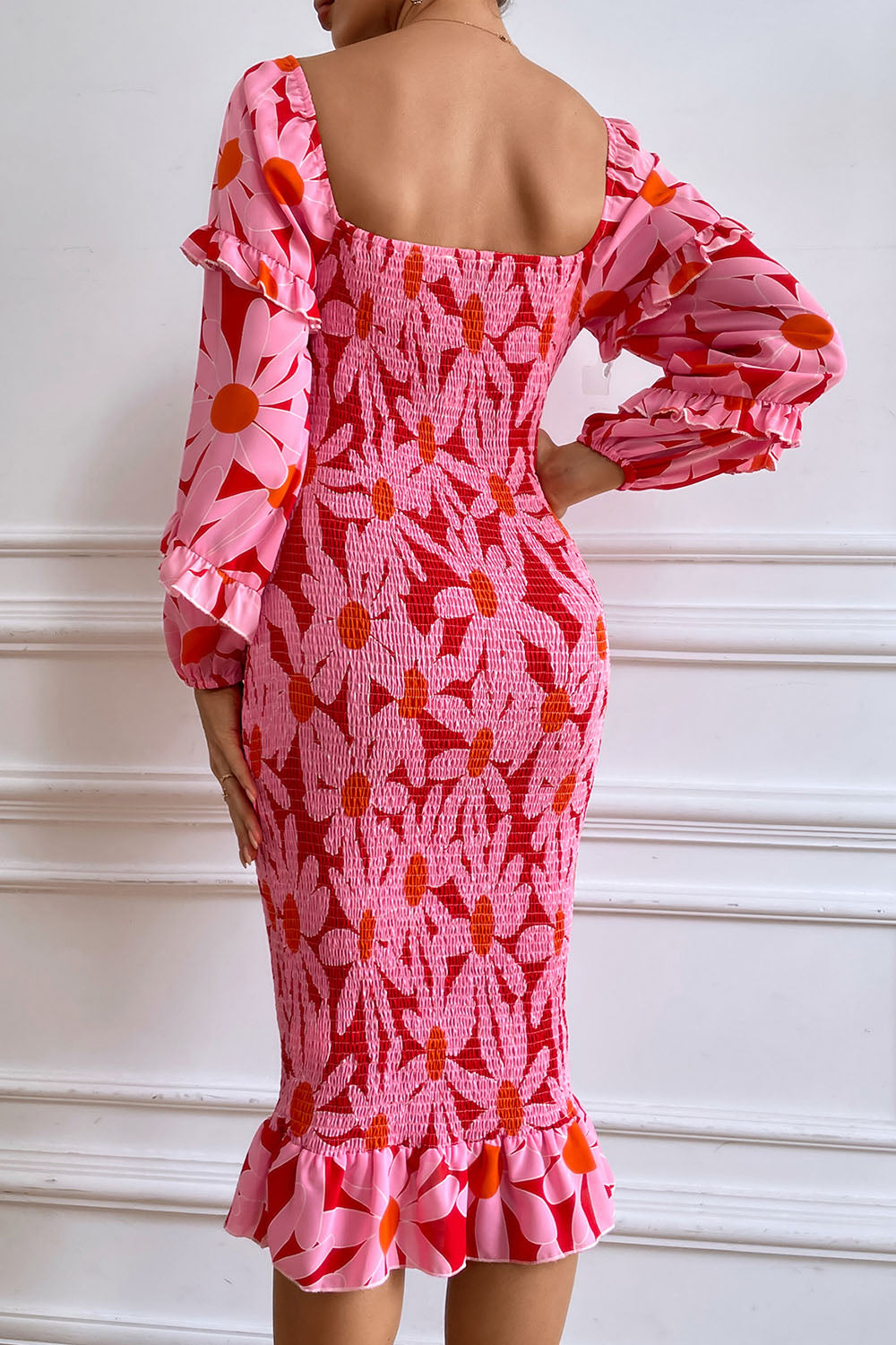 Women Ruffle Mermaid Square Neck Smocked Dress