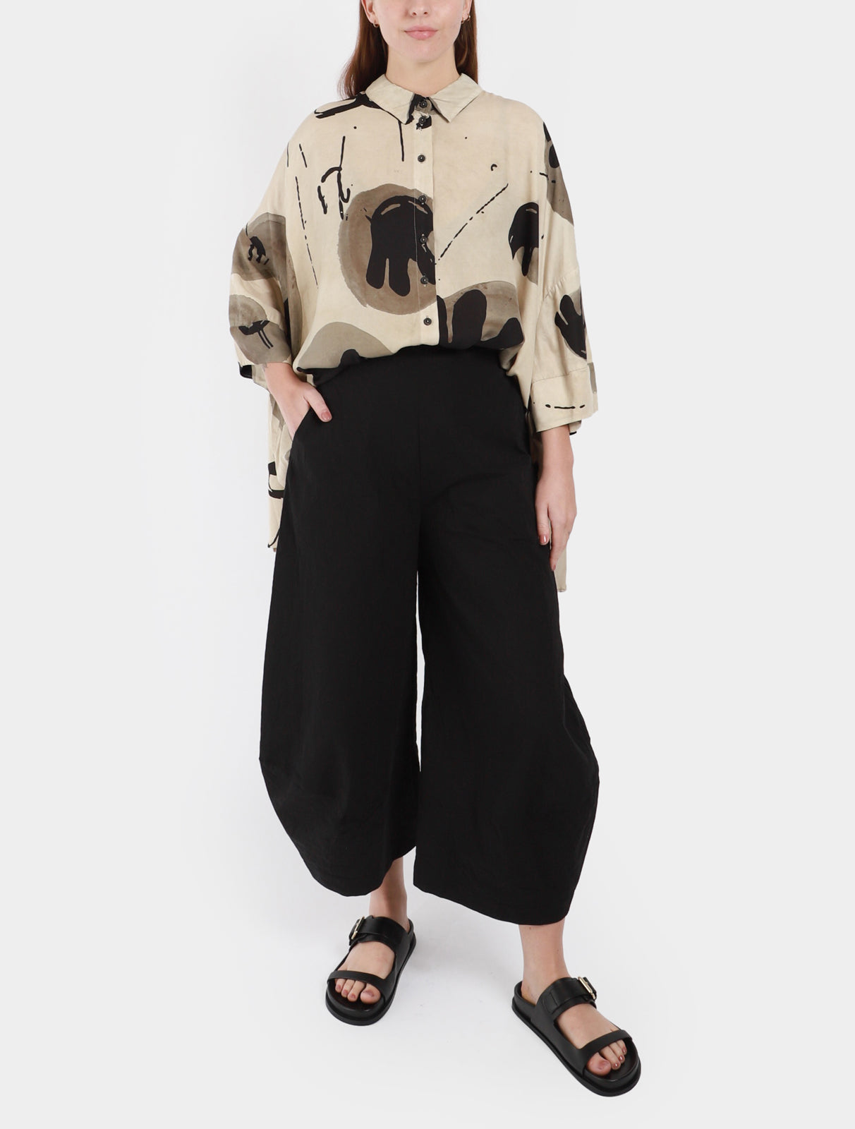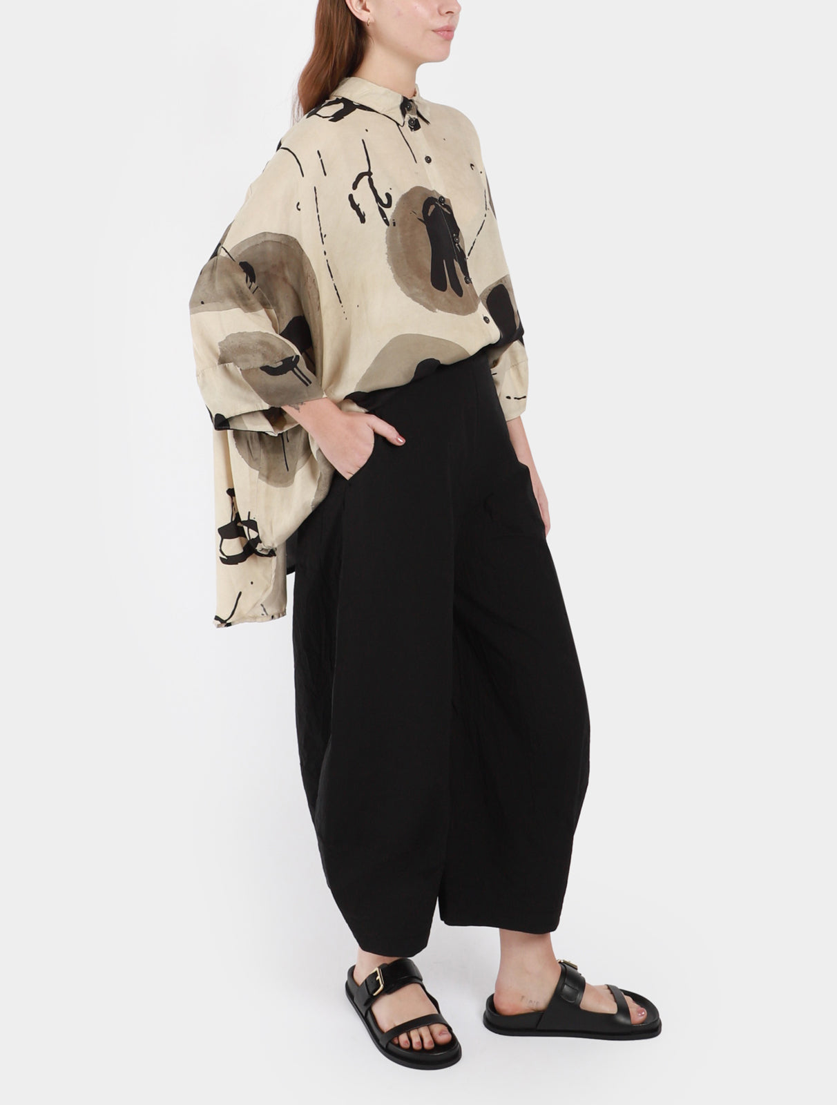 - Slightly low crotch pant